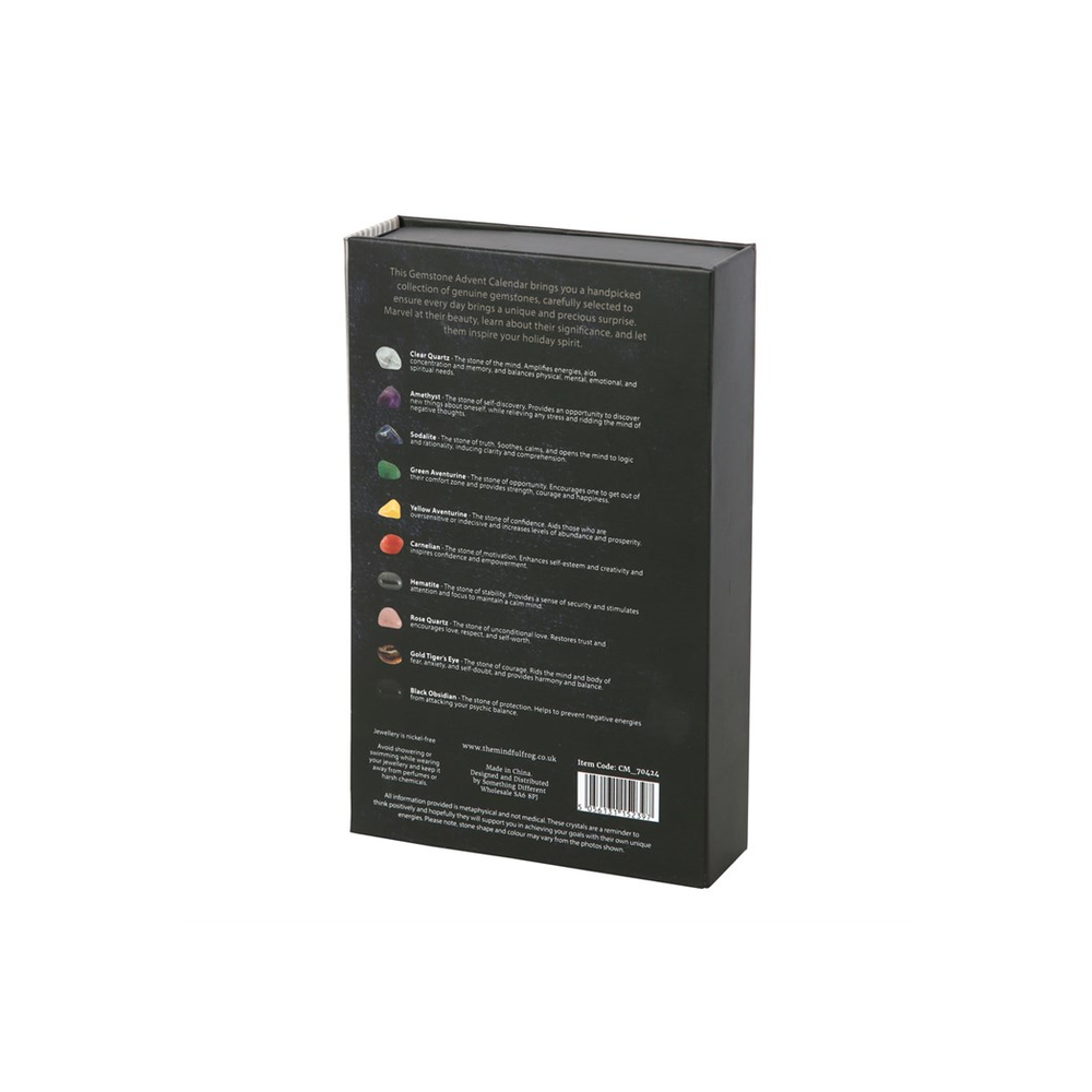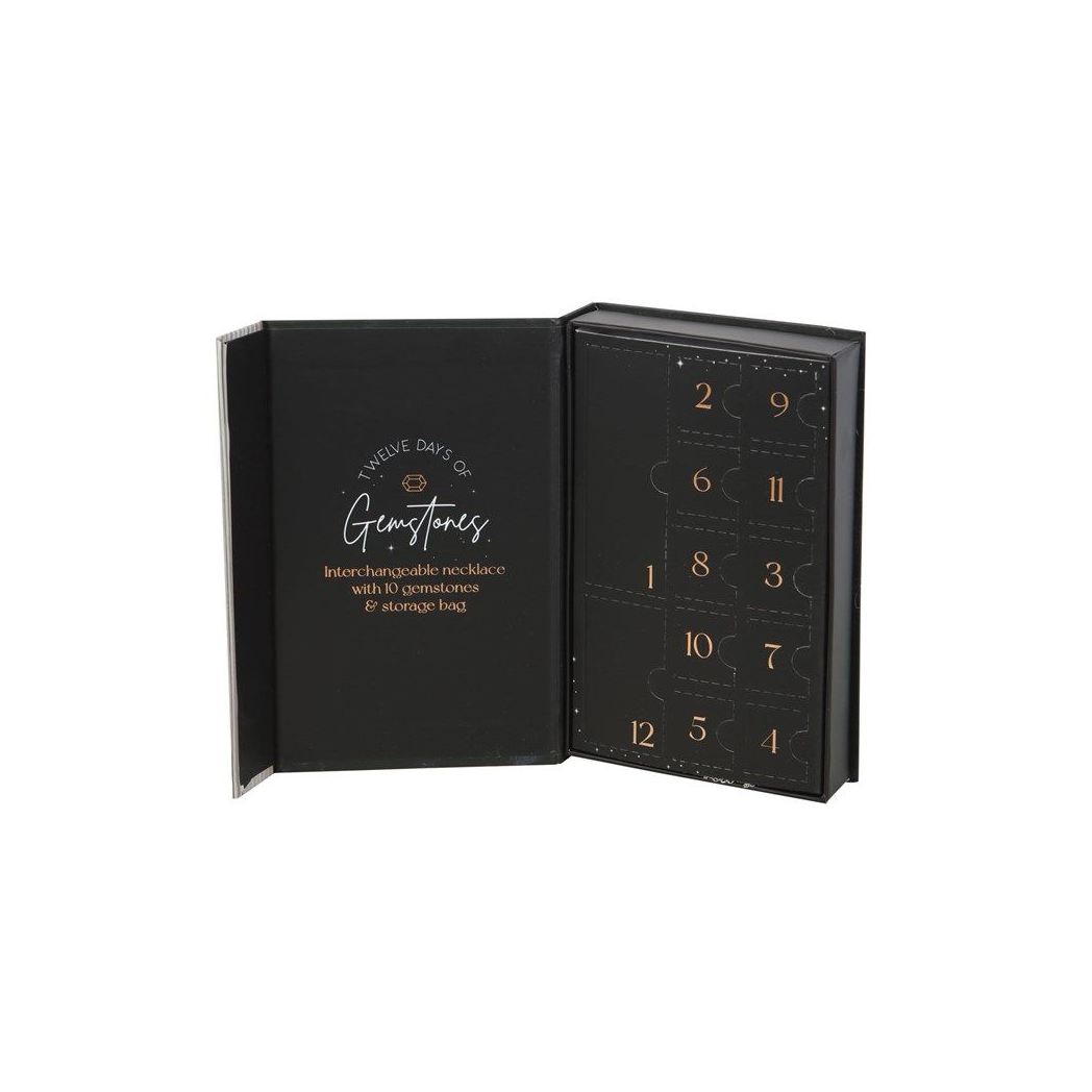 Celebrate the countdown to Christmas with the crystal necklace advent calendar. This beautiful advent calendar includes an interchangeable necklace with 10 different gemstones and a handy storage bag. Each day reveals a new gemstone to add to your collection. The gemstones featured in this advent calendar are clear quartz, amethyst, sodalite, green aventurine, yellow aventurine, carnelian, hematite, rose quartz, gold tiger's eye and black obsidian. Size, shape and colour of stones may vary, making each crystal unique.