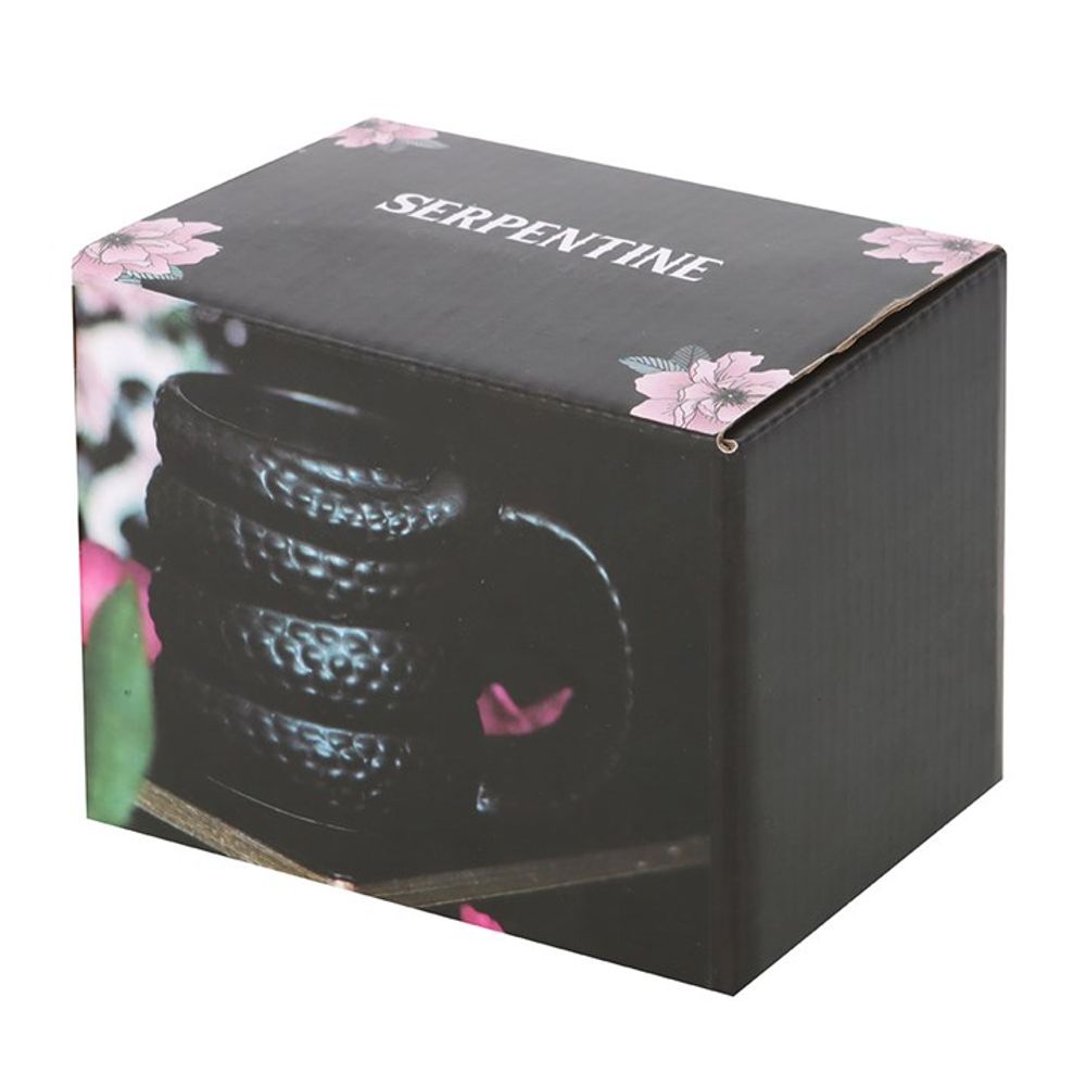 Slither through the day with this beautiful mug featuring a coiled, black snake. Unique and mysterious in design, it's sure to make a bold statement piece for your morning brew. 500ml capacity. Microwave safe. Hand wash only.