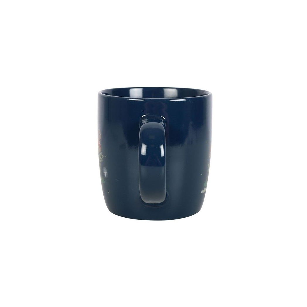 This stunning mug features a winter-forest inspired design that will make sure every morning starts with a touch of magic and wonder. Featuring two magical toadstools accented by a crescent moon and stars, this navy-blue mug is perfect for hot beverages in the colder months. 350ml capacity. Dishwasher and microwave safe.