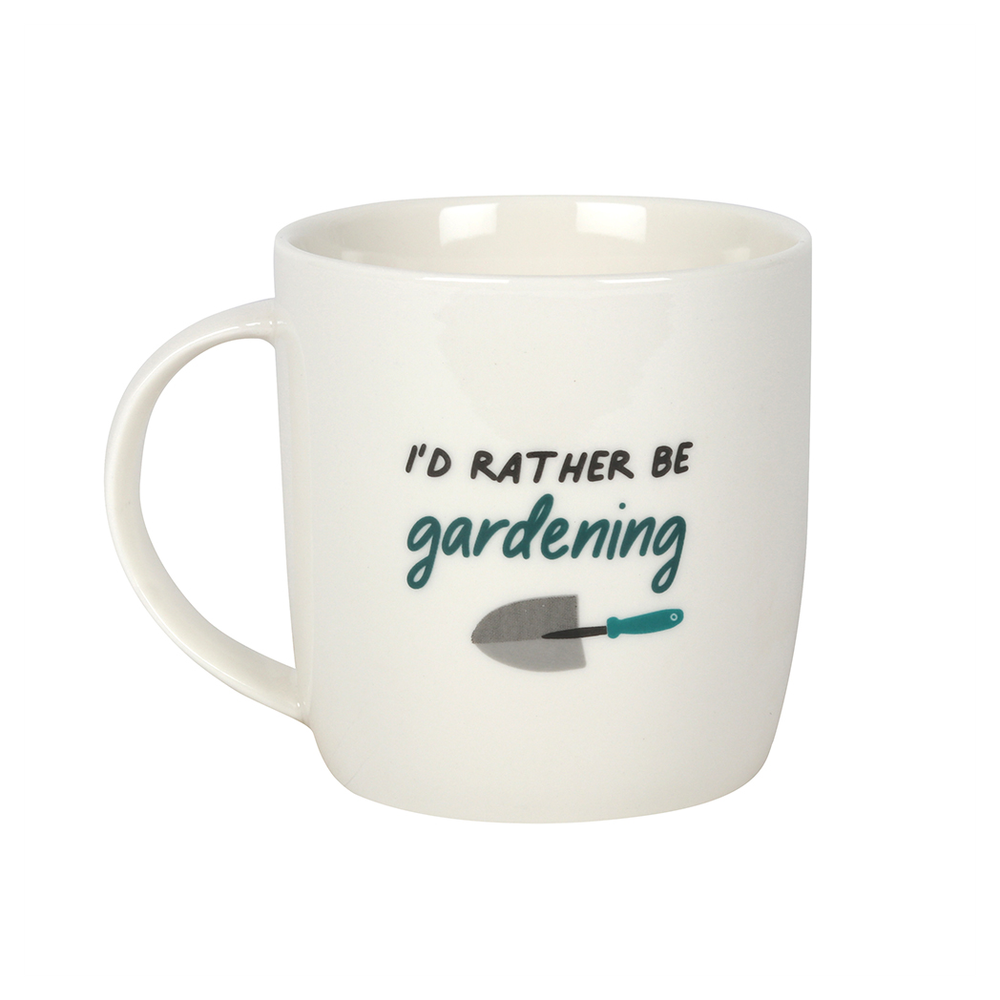 A great gift for keen gardeners, this simple mug features the phrase 'I'd rather be gardening'. Microwave and dishwasher safe.Packaged Dimensions: H9.8cm x W11cm x D9.1cm"
