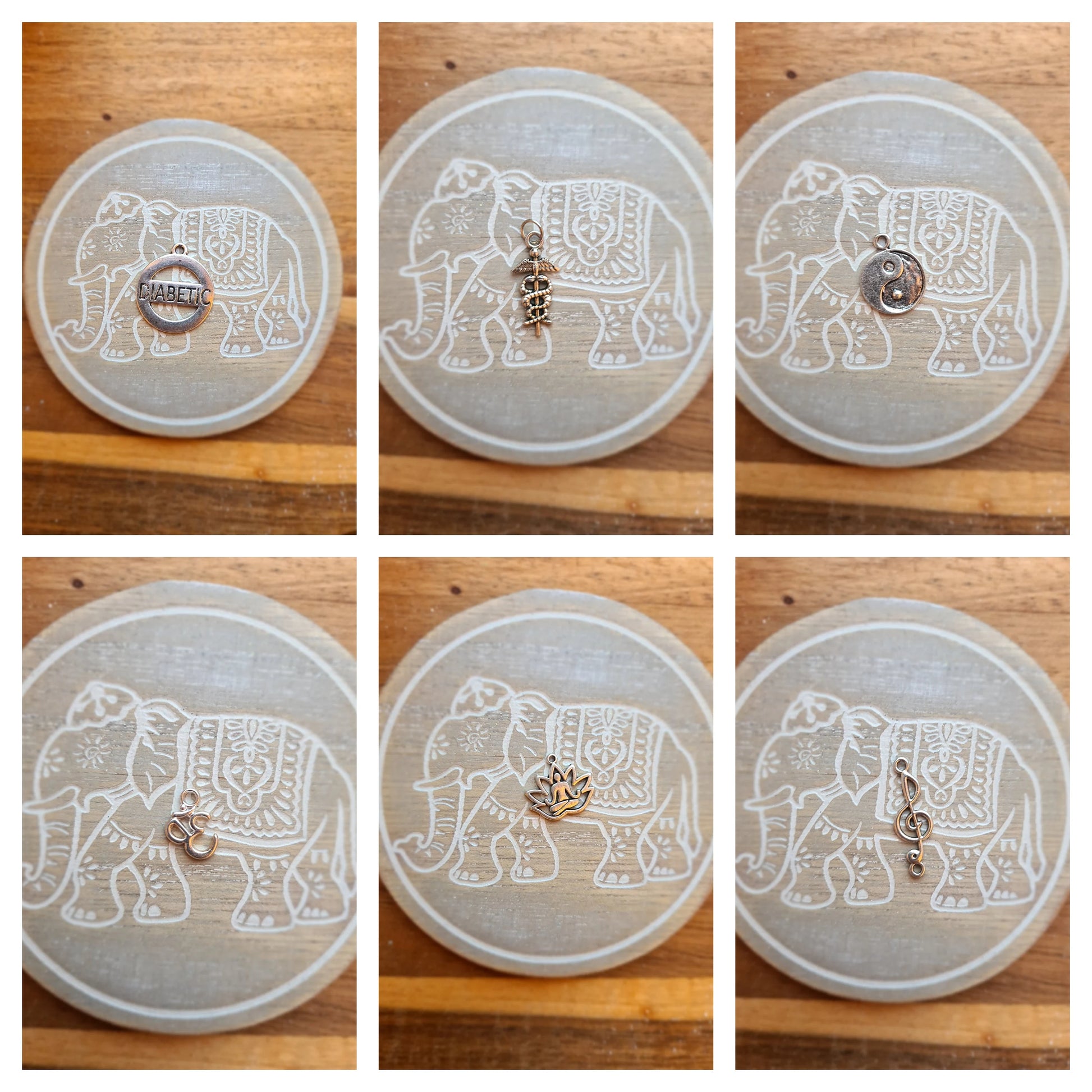 Simply select the colour you'd like, and then contact us via our Contact Us page to let us know which of the 6 available charms you'd like.