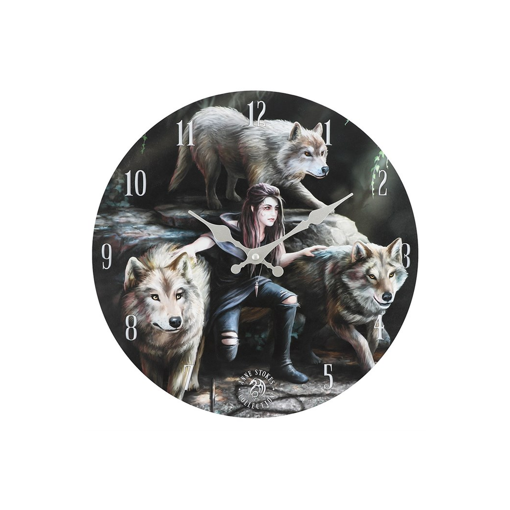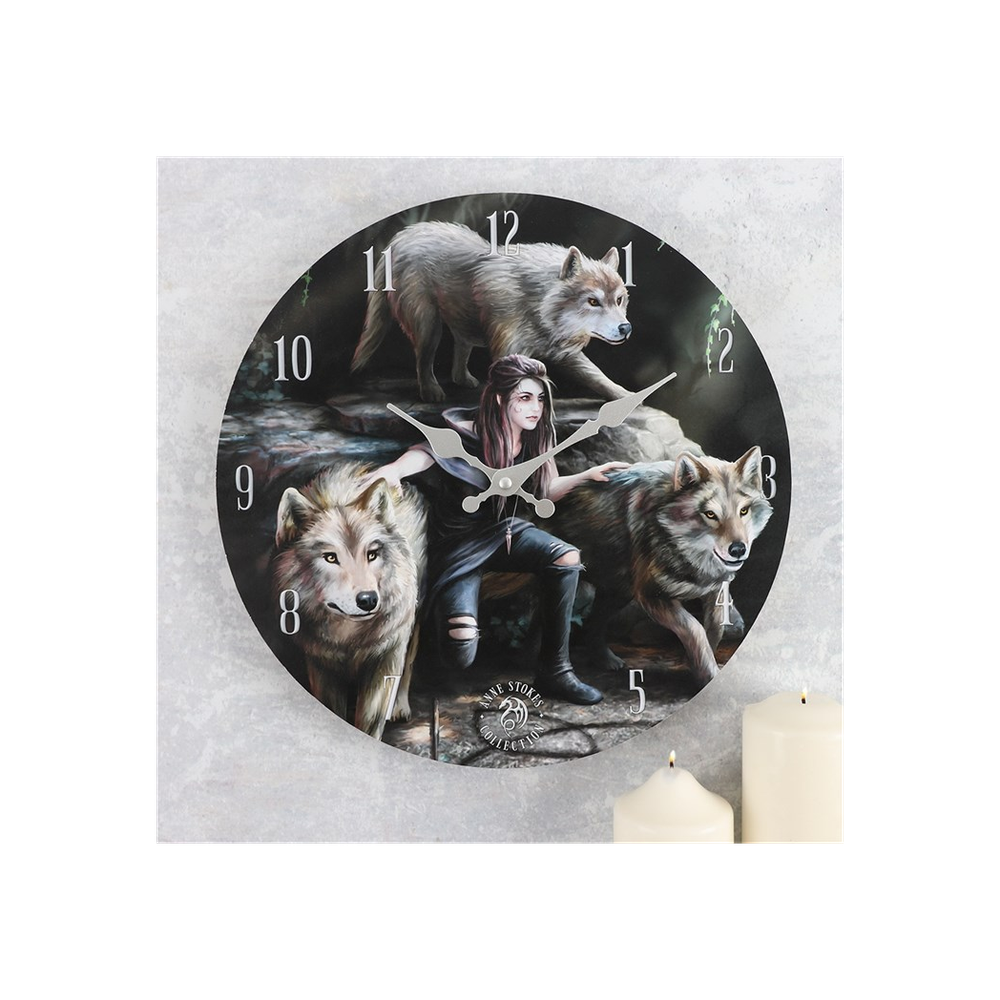Make a statement in your home with this stunning wall clock featuring the 'Power of Three' wolf artwork by celebrated fantasy artist Anne Stokes. Requires 1 x AA battery to operate which is not included. Product Dimensions: H34cm x W34cm x D2.5cm Packaged Dimensions: H35cm x W35cm x D4.5cm