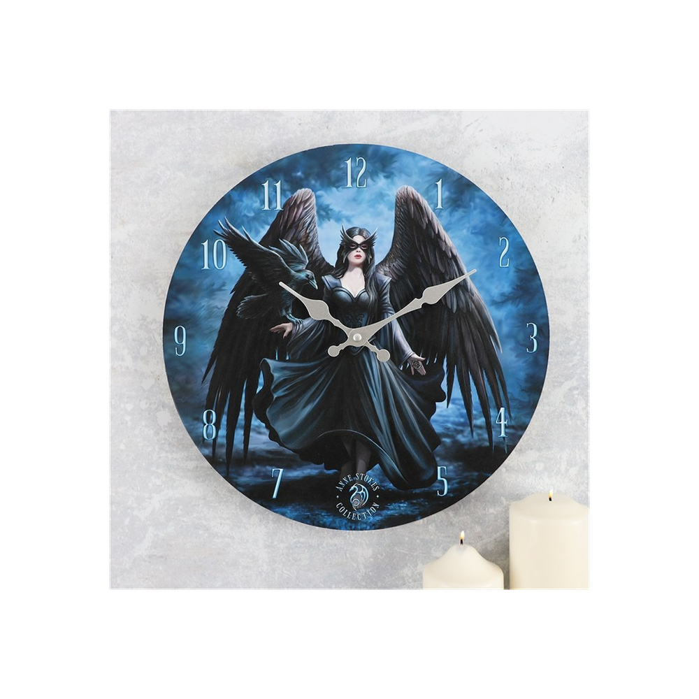 This MDF wall clock features the 'Raven' design by popular fantasy artist Anne Stokes. Requires 1x AA battery to operate which is not included. Product Dimensions: H34cm x W34cm x D2.5cm Packaged Dimensions: H35cm x W35cm x D4.5cm