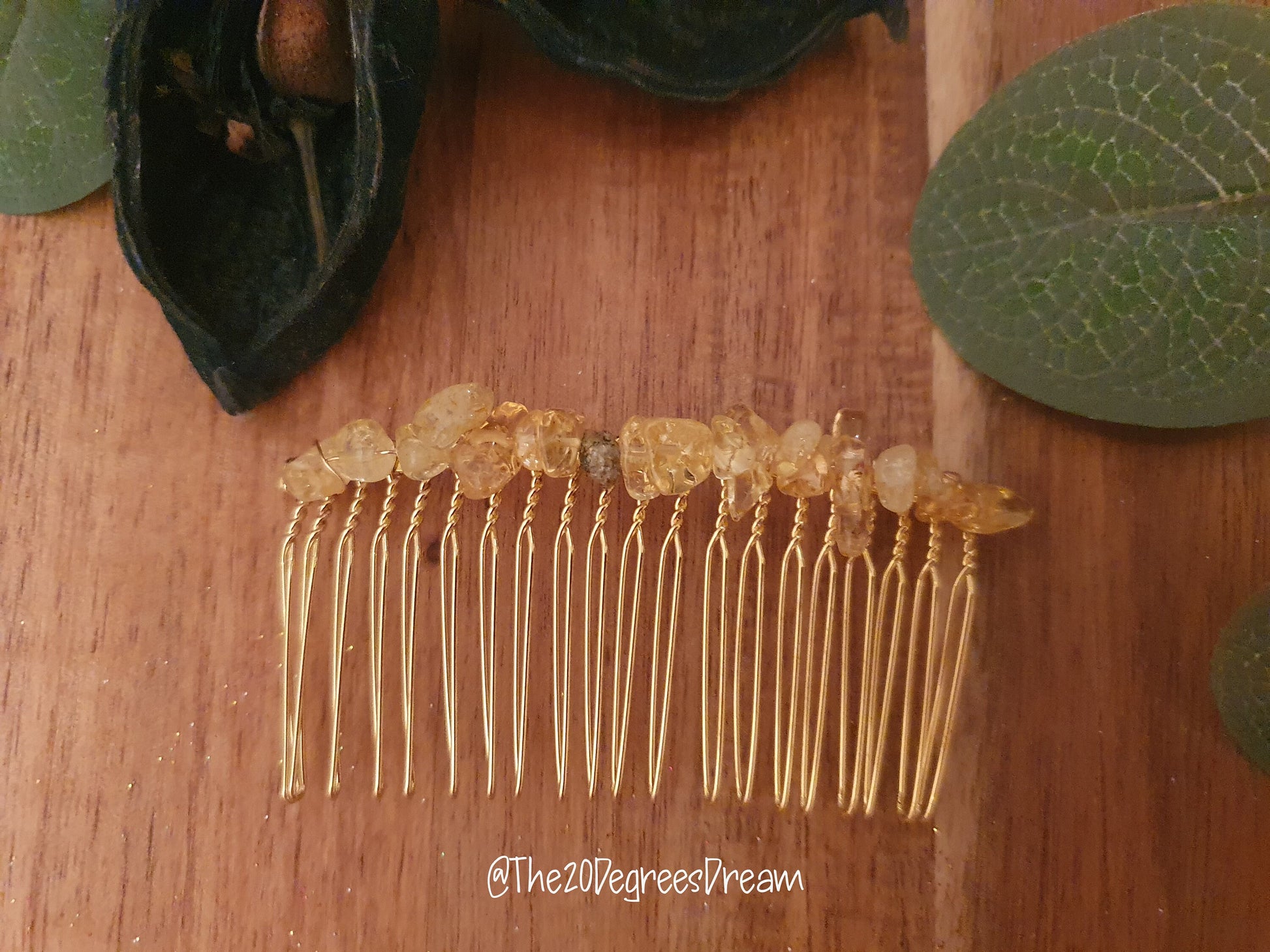 A beautiful rose quartz hair comb made from beaded crystals or Lapis Lazuli and Obsidian.