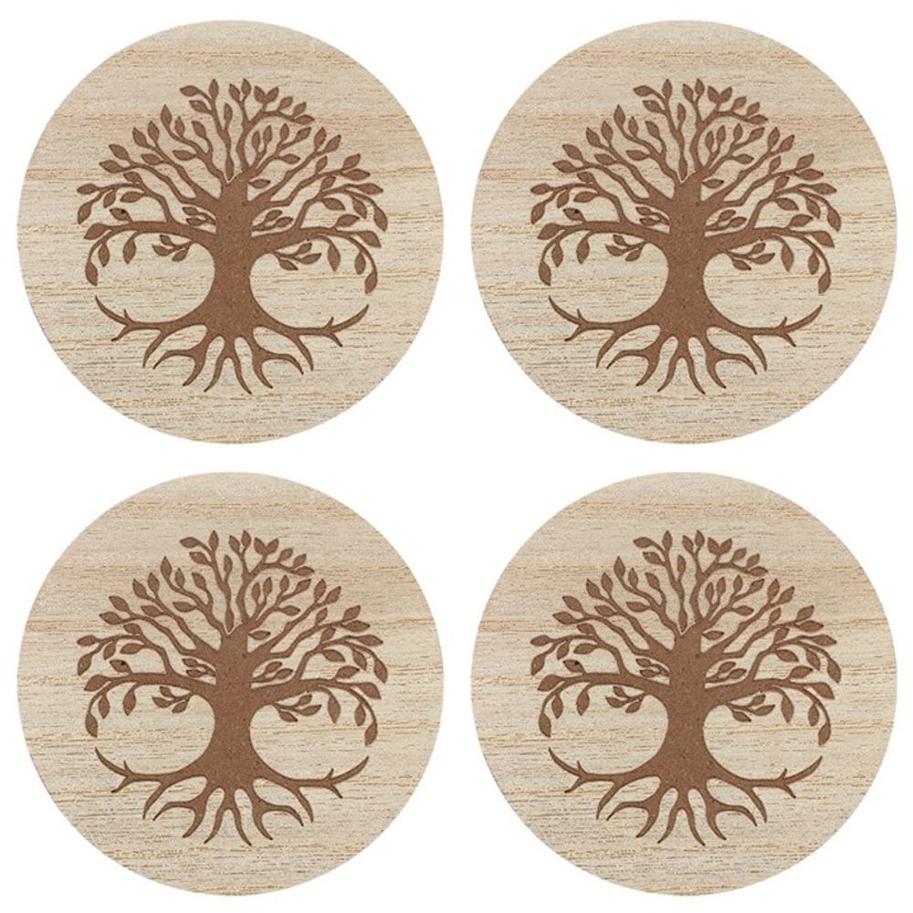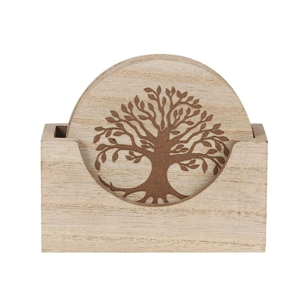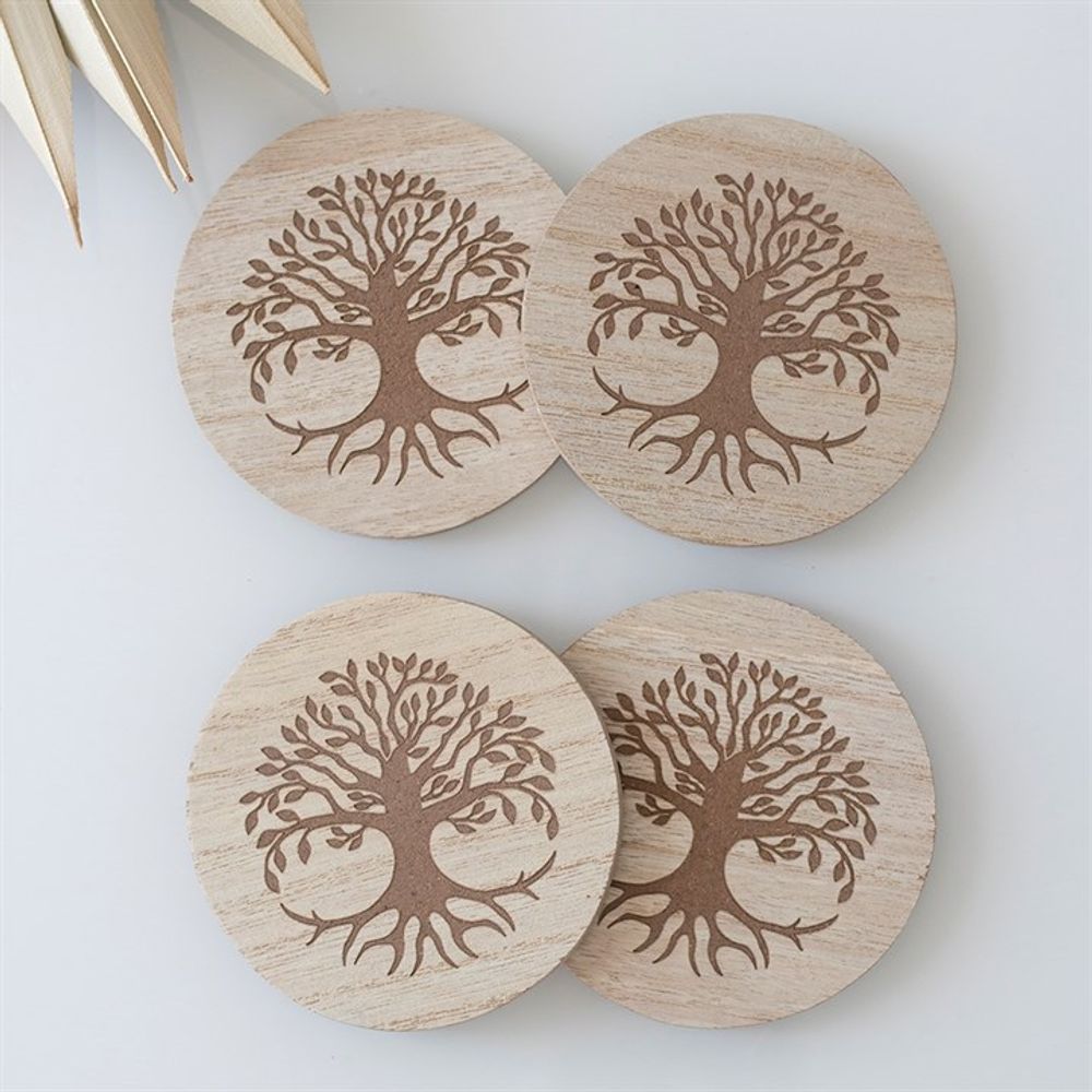 A set of 4 wooden coasters in a matching holder featuring an engraved Tree of Life silhouette. Perfect for any contemporary home. Product Dimensions: H9cm x W11cm x D4cm Packaged Dimensions: H11cm x W12cm x D5cm