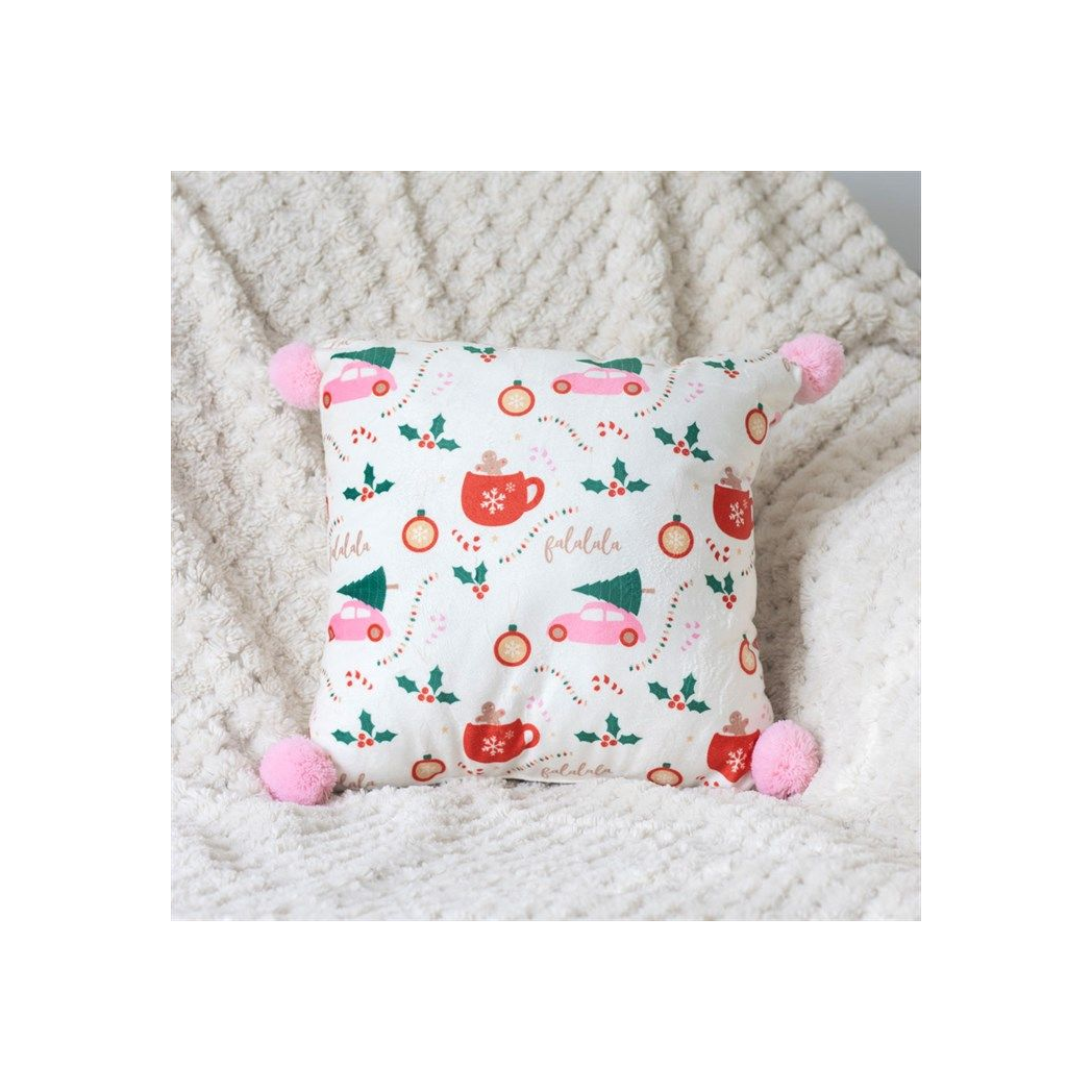 Add some fun, festive style to the home with this Christmas print cushion featuring traditional icons with a modern twist. Pink pom poms add extra flair to this design making it perfect for creating a vibrant and inviting space sprinkled with Christmas magic. 100% polyester, dry clean only.